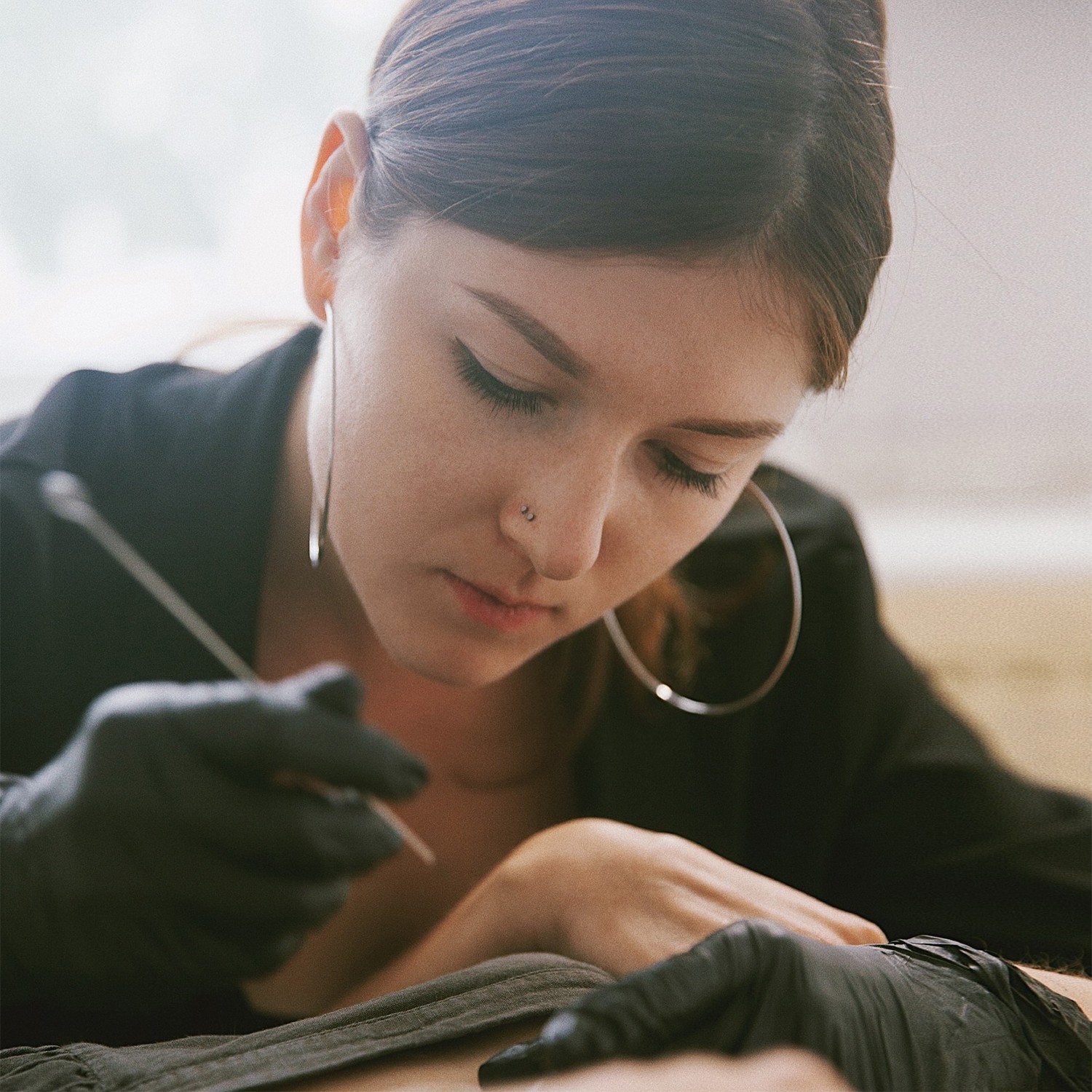 My practice is an exploration and a search for expression, unfolding through drawing, painting, 3D, tattooing, and spatial work.